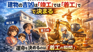 新築やリフォームで方位を気にされる方の多くは、「いつ完成して入居するか(竣工・入居時期)」を最優先に考えます。 しかし、盤珪流奇門遁甲ばんけいりゅうきもんとんこうの視点から言えば、それでは「手遅れ」になるリスクがあります。なぜなら、建物の運命、そしてそこに住む家族への影響は、完成時ではなく『着工時期』で決まるからです。...